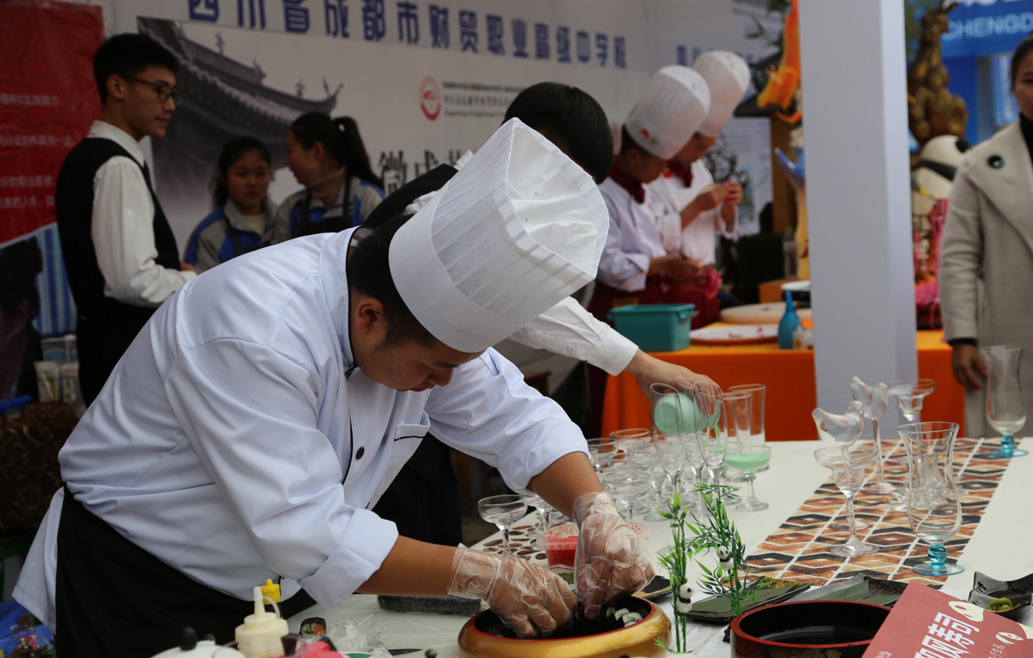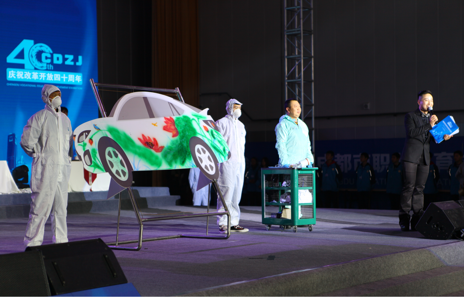 下午,在学校功成广场,我校等10所职业院校学生发挥专长、各显神通,分别展示了汽车美容、烹饪、调酒、咖啡、蜀绣等专业特长,我校的汽车车身彩绘展示更是彰显了学校师生的高超技能,牢牢抓住了观众的眼球,得到与会领导的高度评价。