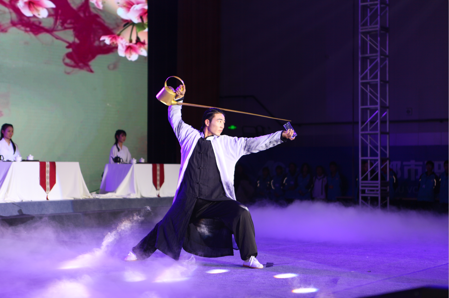 晚上6:30分,文艺展示活动在学校体育馆精彩上演。文艺展示分三个篇章进行,第一篇章:人文润泽,深耕素养。人文润泽,传统奠基,承天府千年之文脉;文化铸魂,艺术塑心,飚西部职教之旗纛。第二篇章:厚德精技,不负韶华。立德树人,淳华有纲,育成都善美之人才;劳动光荣,技能宝贵,展职教工匠之风采。第三篇章:花开有时,出彩人生。花开有时,雏鹰展翅,铸学子出彩之人生;叶落无声,硕果累累,奏职教辉煌之华章。舞台上,师生们用精湛的技艺向我们展示着职业教育的魅力和职教人的风采。活动上,与会领导们为2018年师生技能大赛、中等职业学校文明风采主题比赛获奖师生代表颁发荣誉证书并合影留念。成都市人民政府副市长刘筱柳,成都市政协副主席杨建德,四川省职业教育与成人教育学会会长、原四川省教育厅副厅长姜树林,成都市委教育工委书记、市教育局党组书记、局长刘强,成都市委教育工委委员、市教育局党组成员、副局长王志成,青白江区人民政府副区长杨军,四川省教育厅职业教育与成人教育处处长蔡存明,市教育局及相关部门处室负责人出席文艺展示活动。
