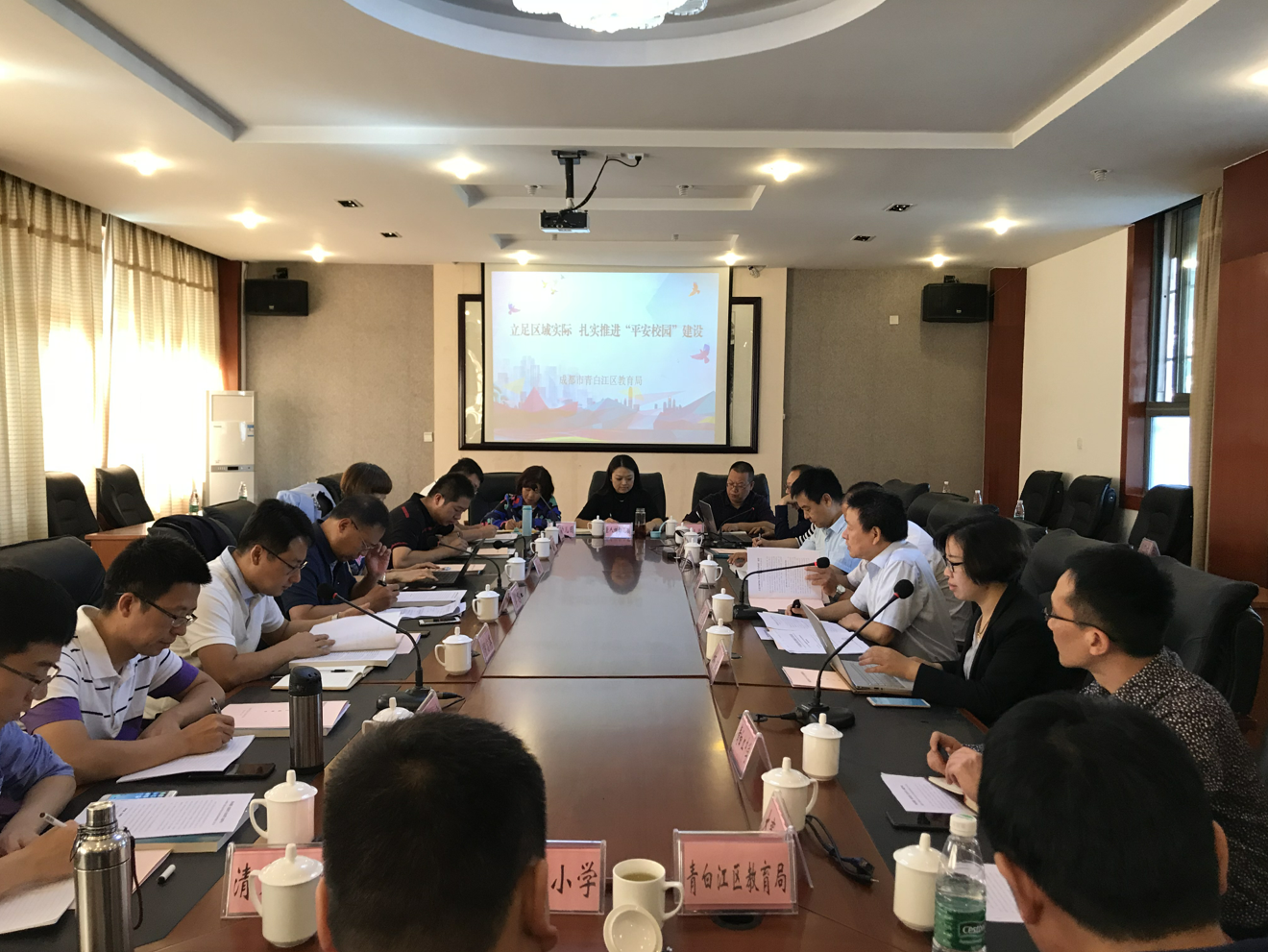 928日,在教育部国家教育行政学院办公室主任李东的带领下,教育部直属机关青年调研团一行7人到我校进行“构建新时代中小学安全治理新格局”安全工作调研。青白江区教育局党组成员、副局长黄居长陪同。
