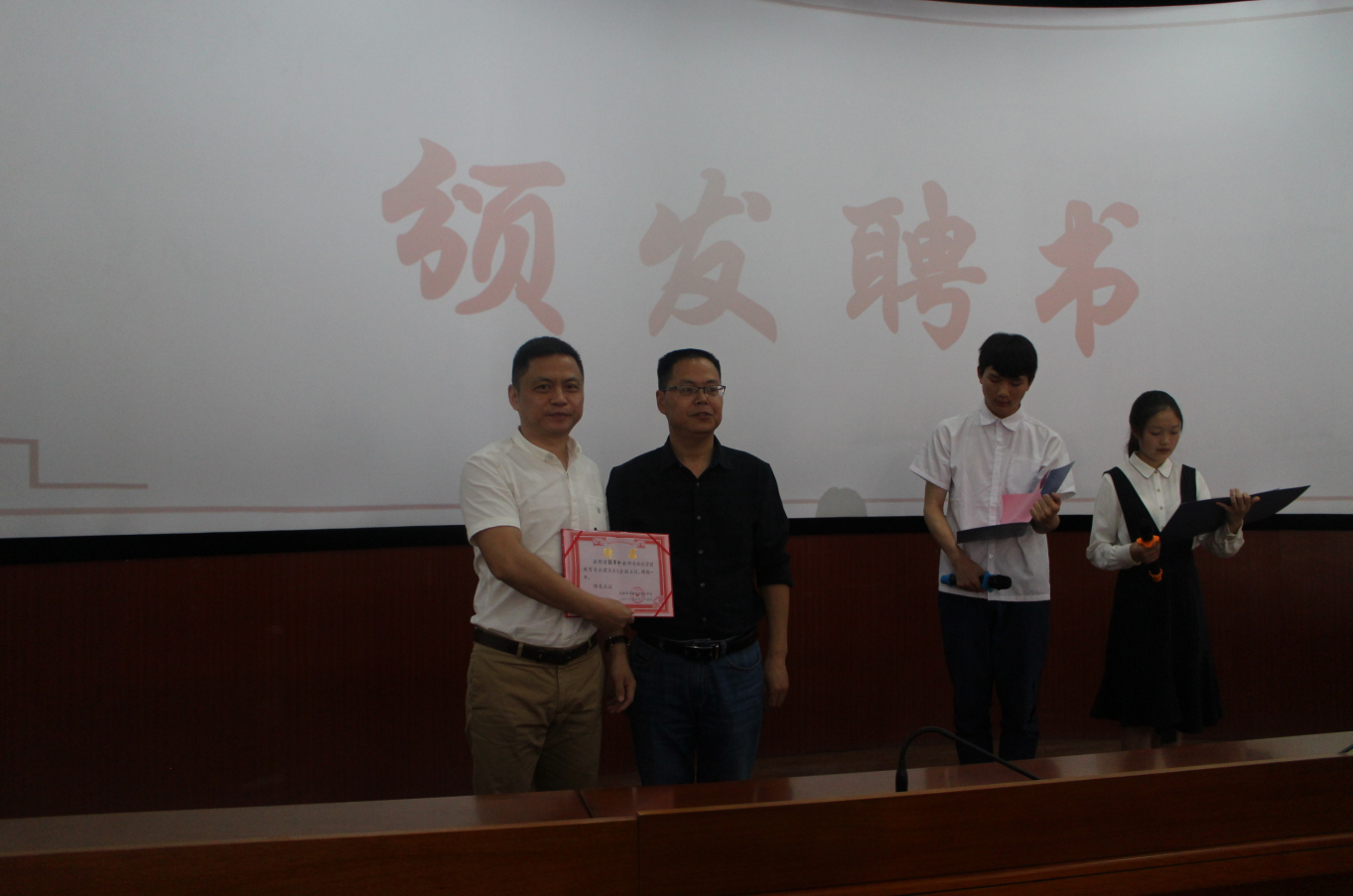 会上,青白江区教育局成职幼教科科长邓伟为中雅国际教育有限公司董事长张俊平颁发了学校学前教育专业建设委员会副主任的聘书。