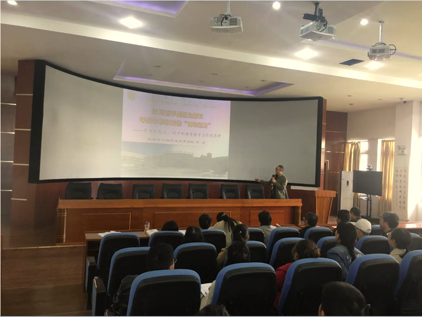 3月23日,在学校学术厅,我校副校长徐力为全体党员带来了题为《以习近平思想为指引,寻找中职教育的“诗和远方”》的新学期微党校第一课。