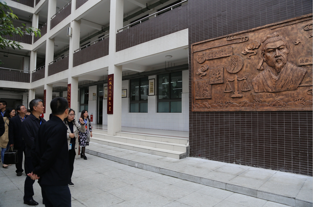 代表们在学校解说员的引导下,参观了学校的校史陈列室、法治宣传橱窗、法治园、法治石刻书籍雕塑、法治文化浮雕墙、法治文化回廊等。参观过程中解说员对学校的法治宣传教育工作进行了详细的解说。