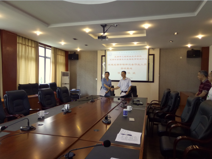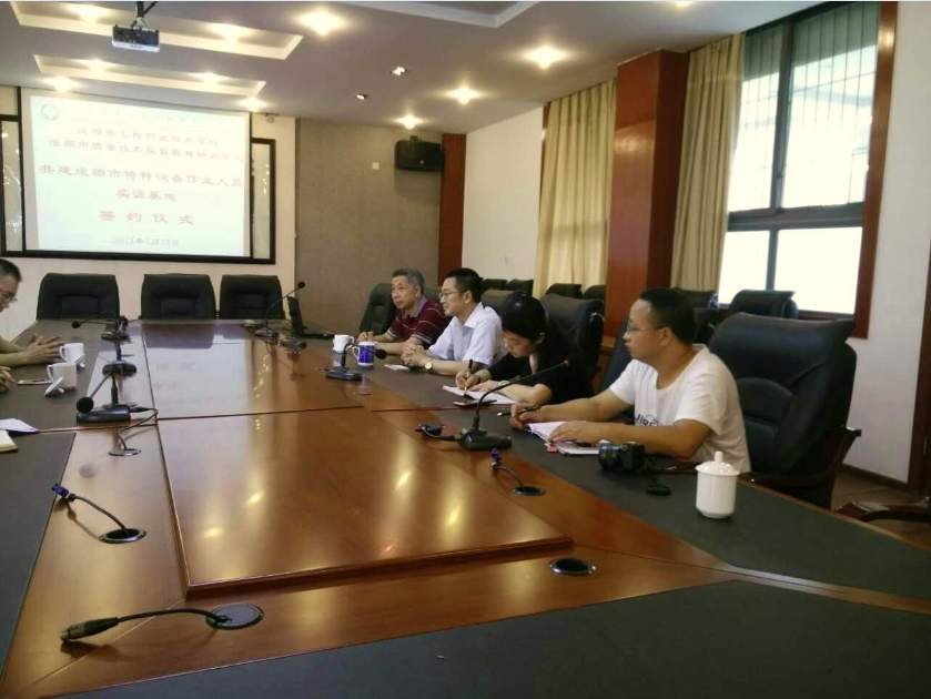 7 月18 日上午,我与成都市质量技术监督教育培训中心举行共建特种设备作业人员实训基地签约仪式。