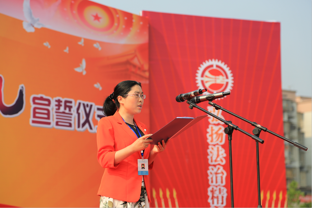 为引导青少年牢固树立法治观念,进一步激发青少年的爱国情感、公民意识和社会责任感,5月19日,我校举行法治教育成果展暨法治成人礼宣誓仪式。青白江区委办副主任、区依法治区办常务副主任嘉勇,区教育局党组书记、局长郭万俊,区检察院副检察长黄晶、区委宣传部副部长袁关志、区司法局党组成员、副局长胥雪龙以及区依法治区办、教育局、检察院、司法局等相关部门负责同志出席了此次活动。