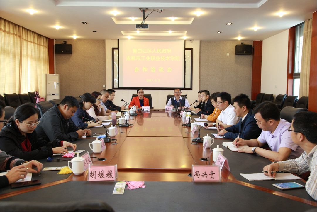 在洽谈会上,杨军副区长首先致辞,他首先对柯院长一行的到来表示欢迎,并介绍了青白江区职业教育的发展情况,表示区委、区政府和各级有关部门将全力以赴,配合好合作办学工作,希望通过双方共同努力,这个项目能够洽谈成功并尽快推进。柯玲院长介绍了成都市工业职业技术学院办学情况。她说,青白江发展物流业区位优势明显,前景非常好,成都市工业职业技术学院对在青白江办学期望很高,与青白江区政府合作办学,将有效依托我校和成都市工业职业技术学院办学特色,通过资源整合,共同办好将来的学校。随后双方就合作办学的具体事宜进行了洽谈。
