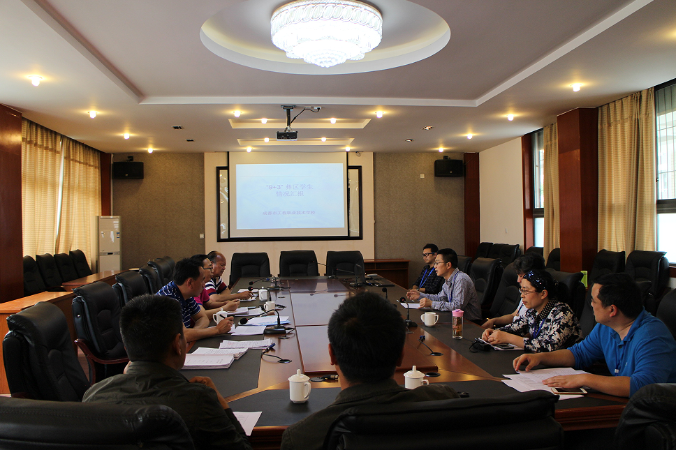冷局长一行在学校领导的陪同下,首先参观了校园环境、校史陈列馆、实训基地等。在学校会议室,彭传章校长详细介绍了学校的发展概况,学生处副主任康志林就学校彝区“9+3”学生学习、生活、日常管理等各项工作进行了汇报,招就办吴晓斌主任就彝区“9+3”学生进入顶岗实习阶段的工作情况进行了介绍。冷局长对学校高度重视、认真负责、周密细致的“9+3”学生管理以及就业安置工作予以了充分肯定,并表示喜德县人社局将与学校建立长效联系机制以更好地推动“9+3”学生就业工作,为彝区学生开拓更广阔的天空。
