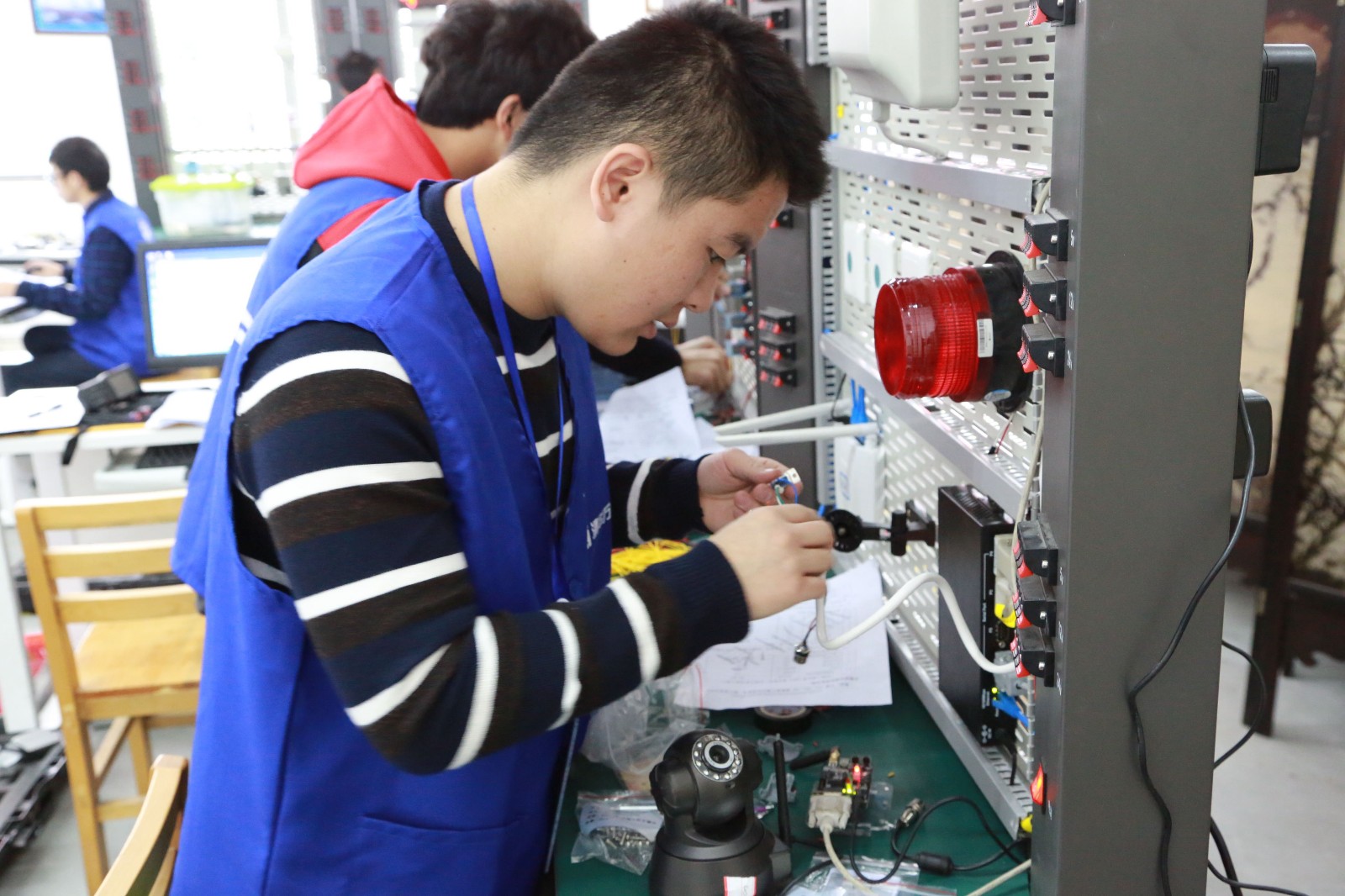 我校历来重视技能大赛工作,希望以赛促训、以赛促教、以赛促发展。本次比赛是全国职业院校(中职组)技能大赛的选拔赛,学校除了要组织老师和学生积极备战外,还承办了物联网技术应用与维护赛项,时间紧,任务重。在赛前,各专业部精心安排指导老师,选拔参赛选手,认真开展训练。在比赛过程中,选手们奋力拼搏、沉着应战,展示了师生风采,彰显了学校办学特色,更提高了师生技能水平。