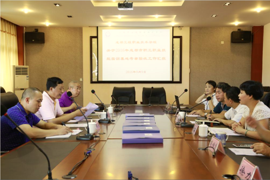9月9日,成都市总工会经保部部长廖小泉一行来到成都市工程职业技术学校,实地考评成都市职工职业技能实训基地建设情况。青白江区总工会副主席曾敏、区教育局党组成员、副局长黄居长、区教育局党组成员、工程职校校长彭传章等同志参加了考评工作。